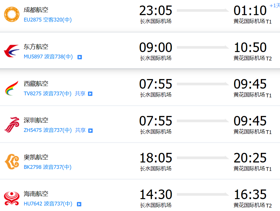 昆明長水國際機(jī)場沒有直飛張家界荷花機(jī)場的航班,有直飛長沙黃花機(jī)場的航班,具體參考如下: