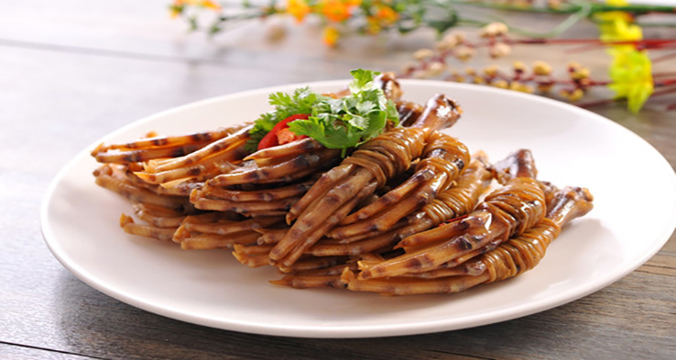 鴨腳包外觀呈琥珀色,晶瑩剔透,光澤鮮亮,蒸熟可以直接食用,香氣四溢,Q彈有嚼勁。與鹵制和其他方法制作的鴨腳相比,風(fēng)味獨(dú)特,香味更醇,入口更筋道。若是將壇裝剁辣椒、大蒜、生姜、香蔥、料酒烹飪后淋在鴨腳包上面,味道更上一層樓,令人拍案叫絕。
