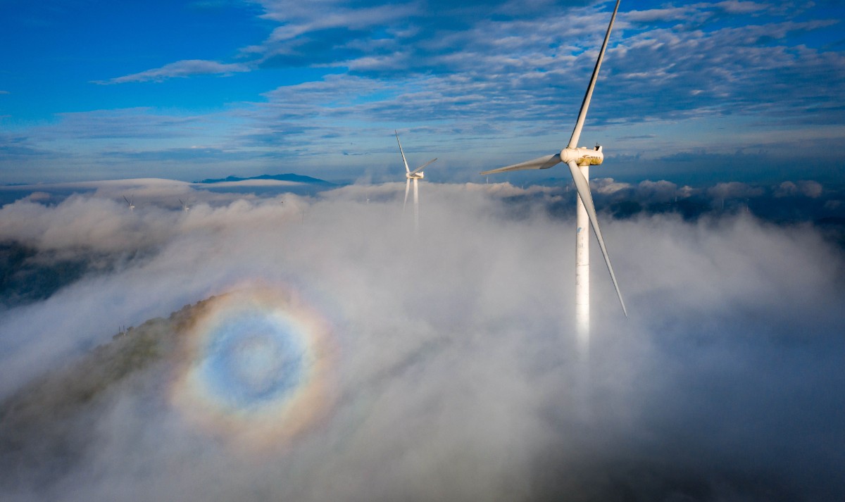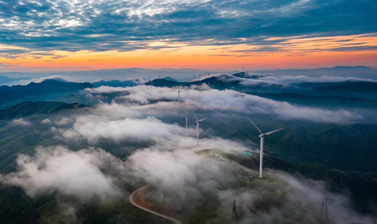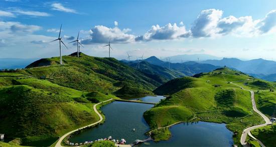 高聳入云的“大風(fēng)車(chē)”沿著山脊蜿蜒數(shù)百公里,高聳入云,猶如一條條巨龍騰空遠(yuǎn)去,蔚為壯觀。