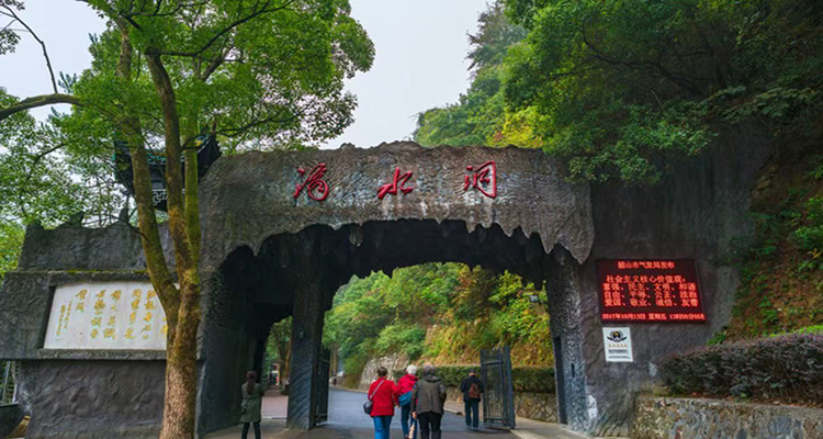 滴水洞長(zhǎng)約2.8公里,洞內(nèi)有小溪,曲曲彎彎,幽壑口朝東北而開(kāi)。小溪沿岸林木繁茂,挺拔的松林中夾雜著茂密的楠竹,而上百種野花漫山遍野地生長(zhǎng)著。這里的珍貴林木有銀杏、女貞、鐵樹(shù)等30多種,這里的花卉有映山紅、臘梅、芙蓉、月季、菊花等上百種,這里的珍貴藥材有金銀花、甘草、沉香、白果等20余種,境幽景優(yōu)是滴水洞幽壑的一大特點(diǎn),人在景中如置身仙境。滴水洞正式對(duì)外開(kāi)放,并陸續(xù)修造了許多旅游景點(diǎn)與設(shè)施。滴水洞門樓,依山造勢(shì),頂部垂著深灰色的石鐘乳,中覆著紫藤、絡(luò)石、烏蘿,古趣盎然,上題“滴水洞天”4個(gè)朱紅大字。門樓建在水濱崖邊,韶山水庫(kù)波光粼粼,巖邊松柏勁拔,給游人以先聲奪人之感;加上守衛(wèi)者仍保留全副武裝,仿佛毛澤東仍在洞中安歇。進(jìn)得門樓,臨水一亭翼然,倚欄俯仰,只見(jiàn)山風(fēng)拂面;又見(jiàn)游道右側(cè)山巖石壁上,倏然從松樹(shù)間躍出靈氣飛動(dòng)的“滴水洞”3字,正是毛澤東的手跡。道邊的黑色山體上,嵌著一塊塊名人留言的青石碑。漫步滴水洞游道,仿如置身詩(shī)情畫意中,松與竹,青蔥得癢人心肺,山花、野鳥(niǎo)、人面、歌聲,使人陶醉。