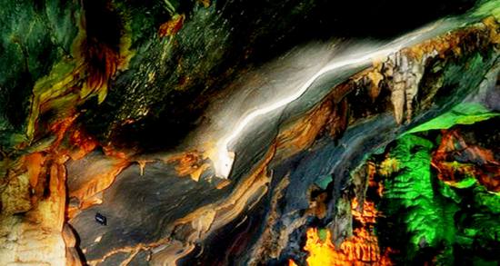 洞內(nèi)寬大幽深,洞中有洞,樓上藏樓,鐘乳石千姿百態(tài)、三步一景、五步一閣,萬(wàn)千景象,令人嘆為觀止,有南宮、北宮、瑤池仙境、海底世界等四大景區(qū)、10多個(gè)廳堂,100多個(gè)景點(diǎn)。